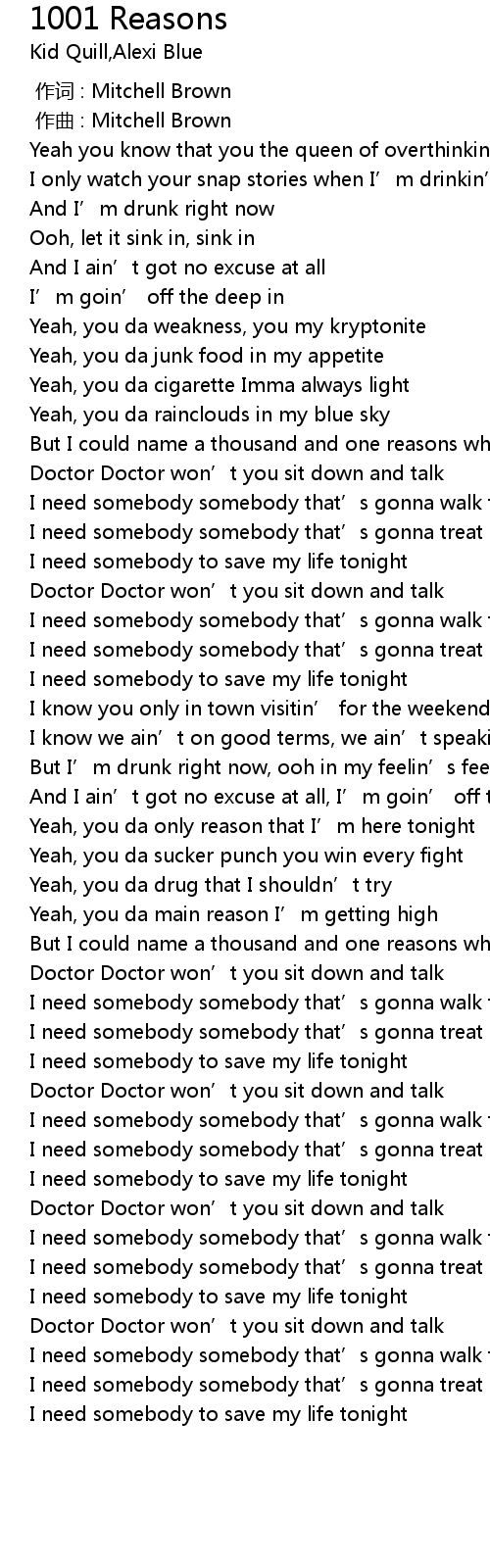 | [00:45.51] | But I could name a thousand and one reasons why I need it |