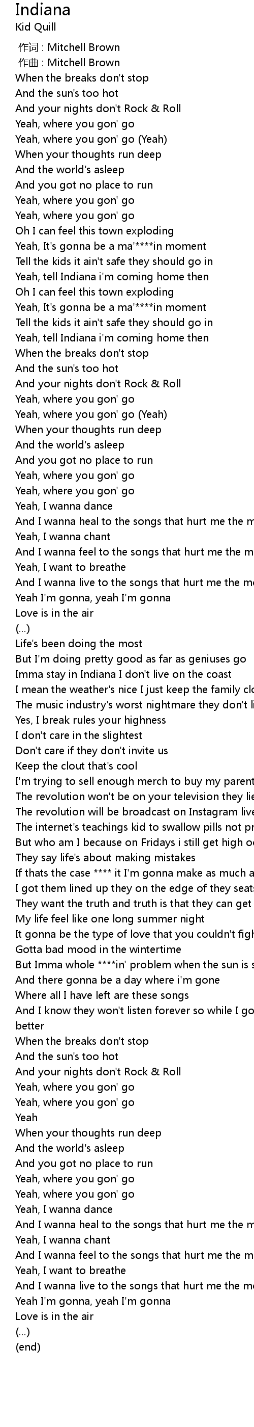 | [00:45.63] | Yeah, tell Indiana i'm coming home then |
