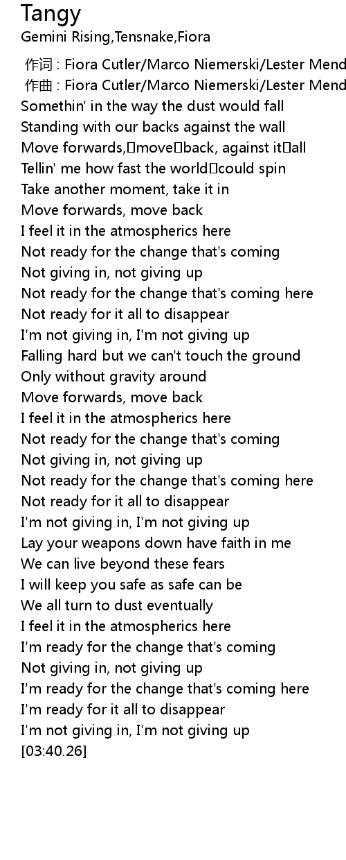 | [01:01.38] | Not ready for the change that' s coming |