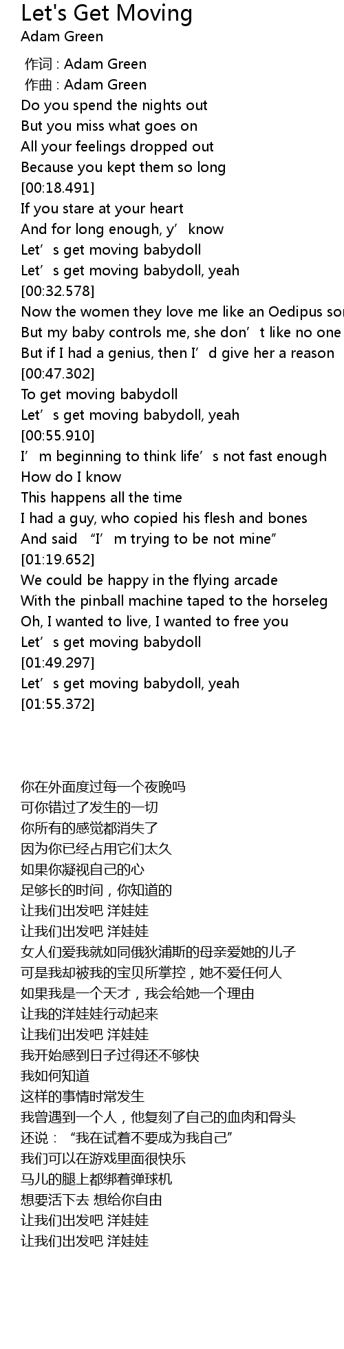 | [00:28.748] | Let' s get moving babydoll, yeah |