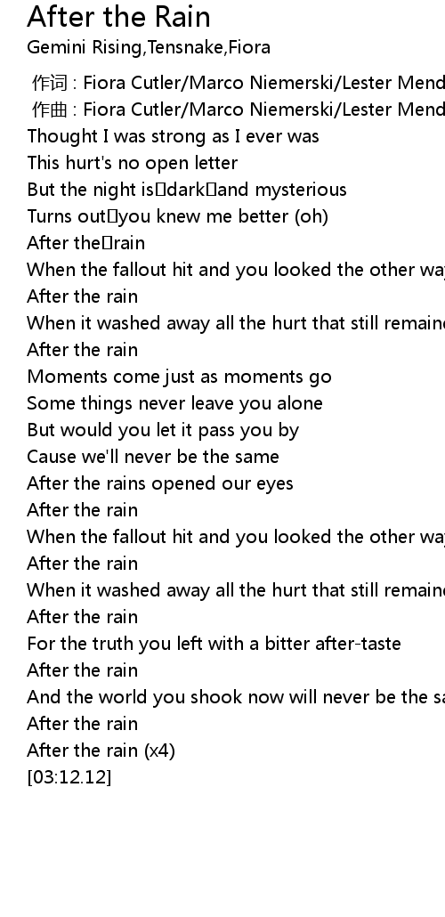 | [00:00.00] | zuo ci : Fiora Cutler Marco Niemerski Lester Mendez |