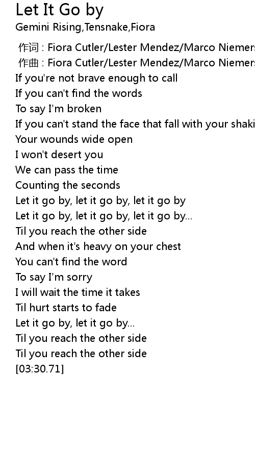 | [01:30.31] | Let it go by, let it go by, let it go by... |