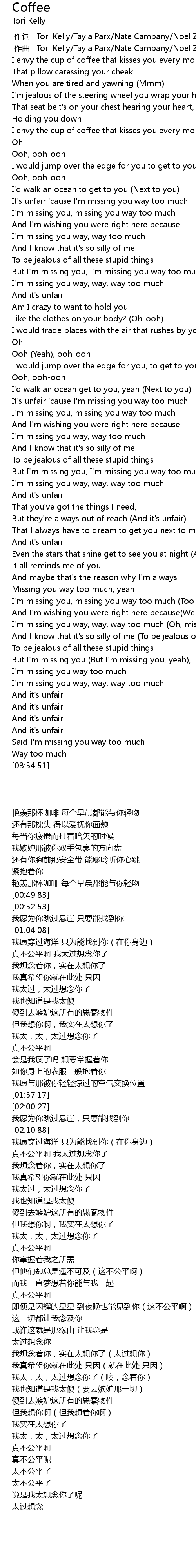 | [02:20.18] | It' s unfair ' cause I' m missing you way too much |