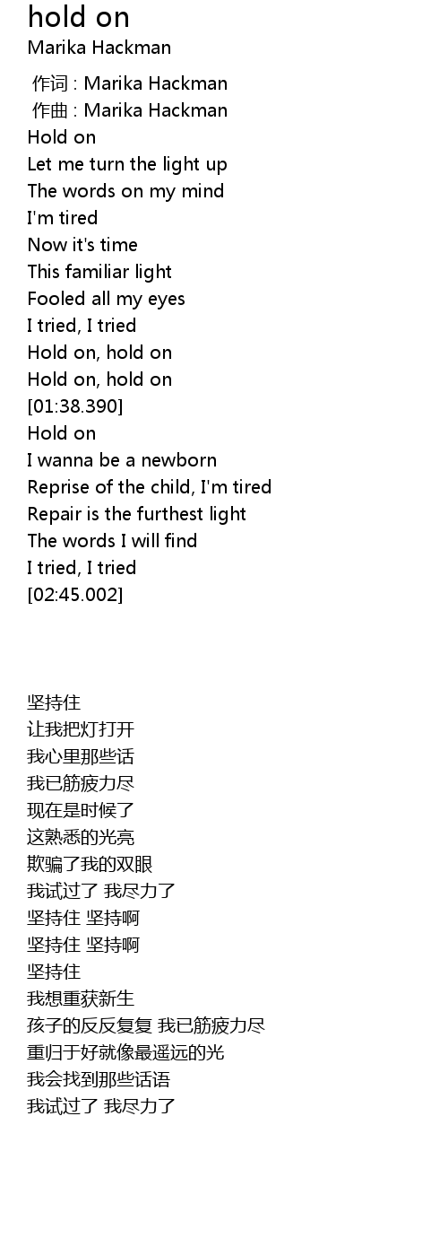| [01:50.485] | Hold on |