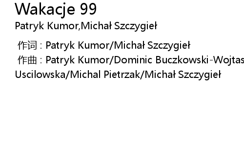 | [00:00.00-1] | zuo qu : Patryk Kumor Dominic BuczkowskiWojtaszek Malgorzata Uscilowska Michal Pietrzak Micha Szczygie |