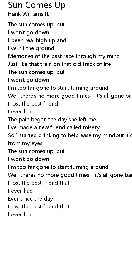 Well there's no more good times - it's all gone badever since the day |