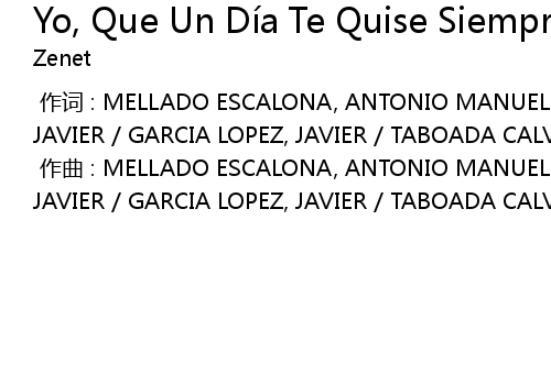 | [00:00.000] | 作词 : MELLADO ESCALONA, ANTONIO MANUEL / LAGUNA MADRAZO, ANTONIO JAVIER / GARCIA LOPEZ, JAVIER / TABOADA CALVO, JOSE ANGEL |