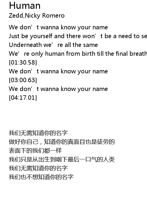 | [00:47.50] | We don' t wanna know your name |