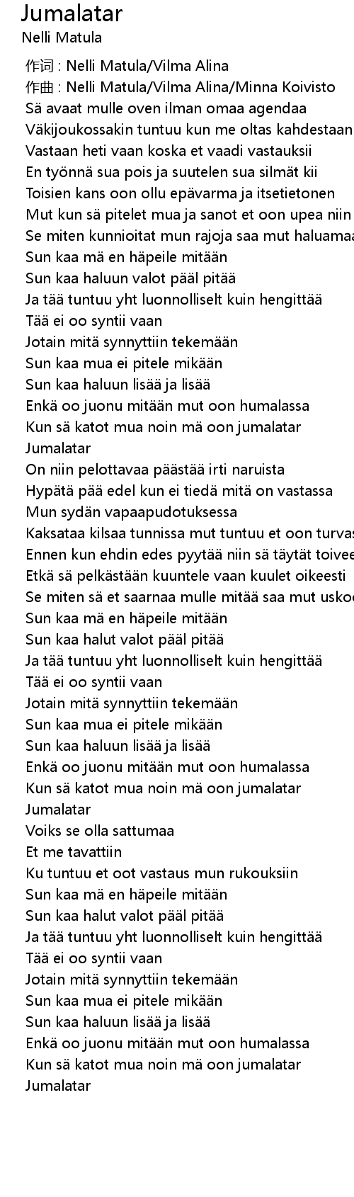 | [00:00.000] | 作词 : Nelli Matula/Vilma Alina |