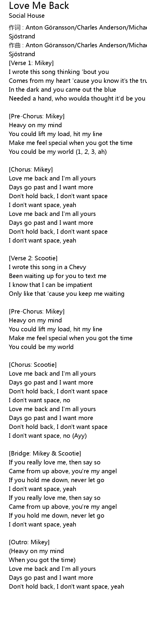 | Love me back and I' m all yours | |