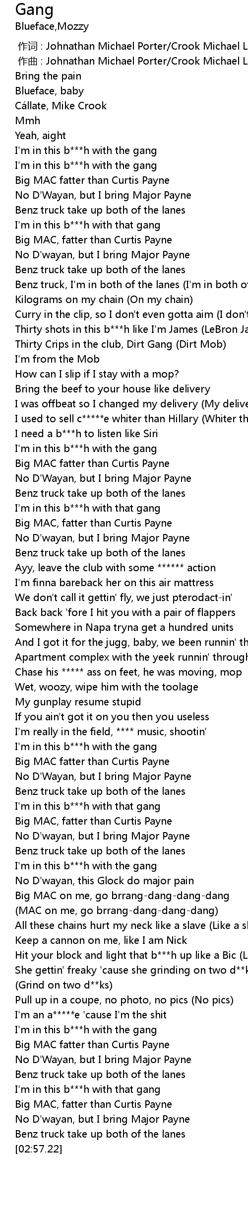 | [02:37.32] | I'm in this b***h with the gang |