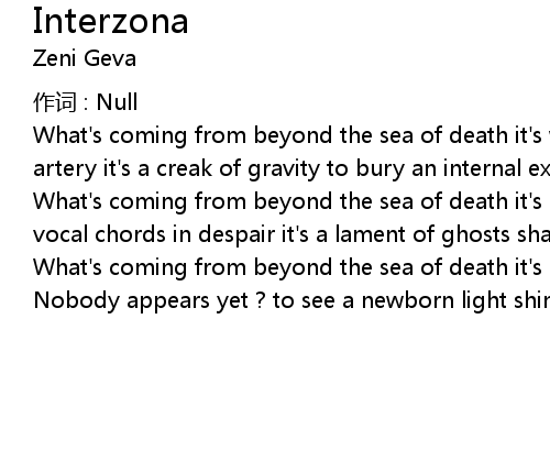 | What' s coming from beyond the sea of death it' s a glitter of metal praying for vocal chords in despair it' s a lament of ghosts shaking bleached backbones | |