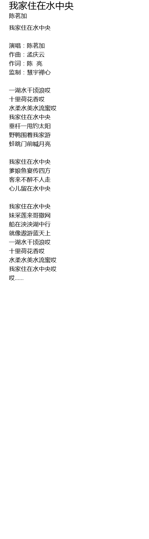 | wǒ jiā zhù zài shuǐ zhōng yāng | |