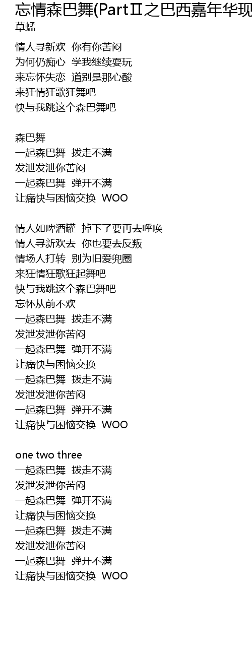 | Song | 忘情森巴舞(PartⅡ之巴西嘉年华现场录音版) |