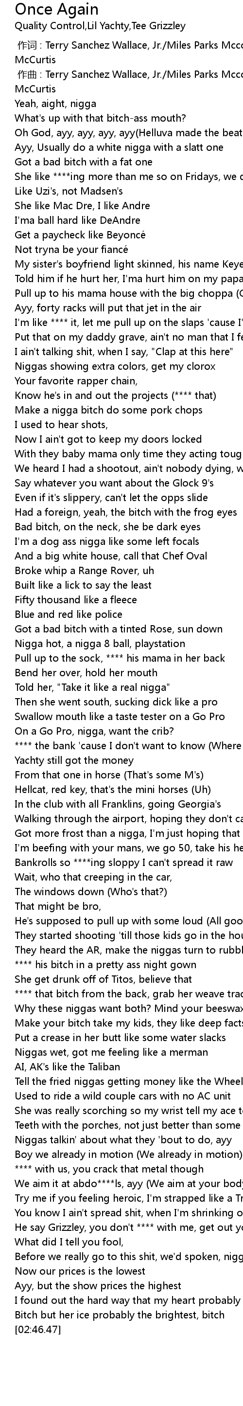 | [00:08.90] | Ayy, Usually do a white nigga with a slatt one |