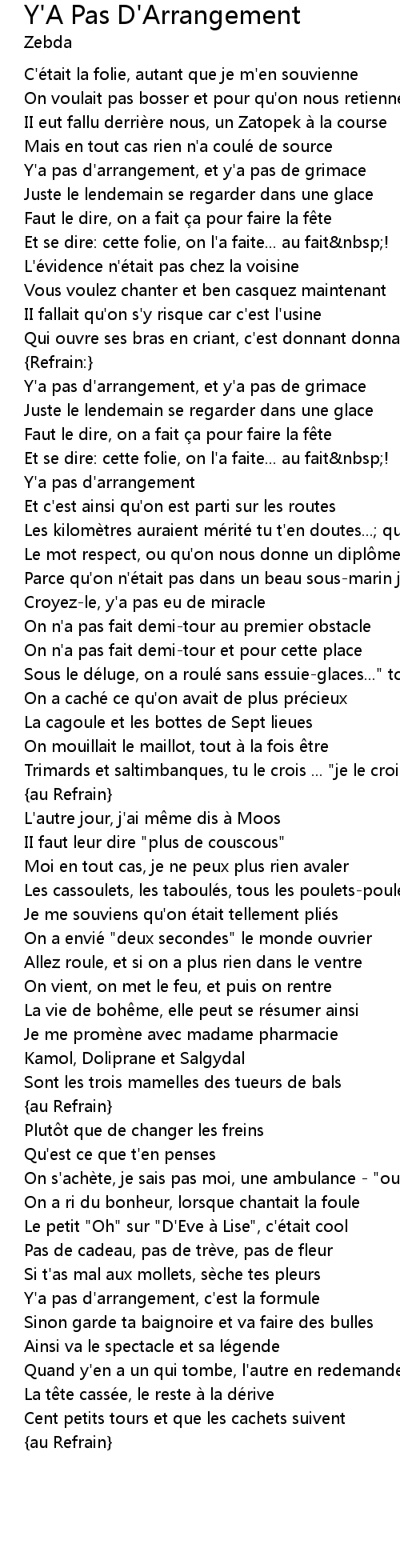 | Y' a pas d' arrangement, et y' a pas de grimace | |