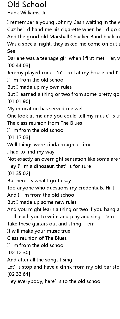 | [02:35.50] | Hey everybody, here' s to the old school |