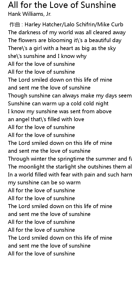 | [01:12.699] | Though sunshine can always make my days seem bright |