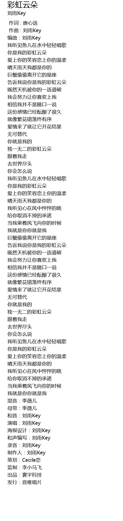 | [01:13.96] | 独一无二的彩虹云朵 |