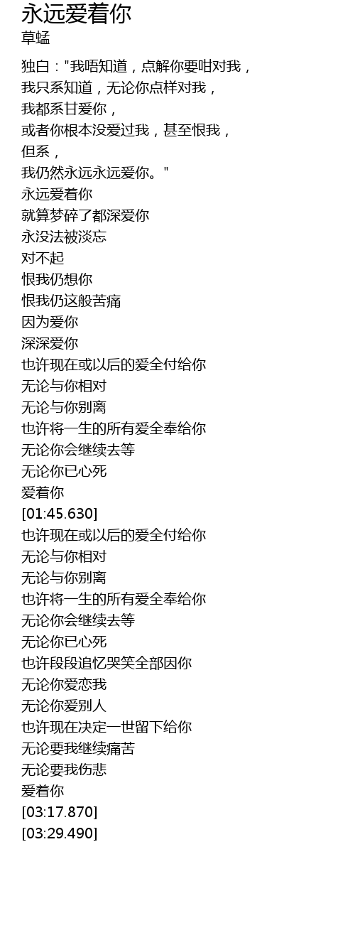 | [00:36.560] | 我仍然永远永远爱你。" |