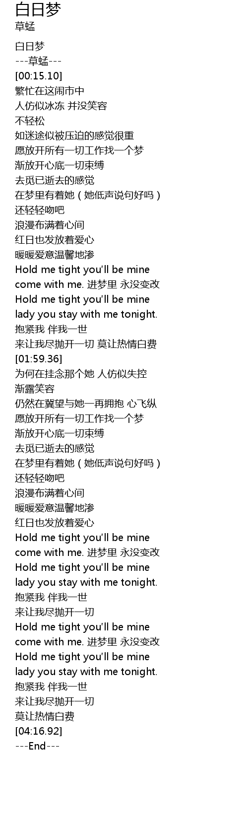 | [02:26.59] | yuàn fàng kāi suǒ yǒu yī qiè gōng zuò zhǎo yí gè mèng |
