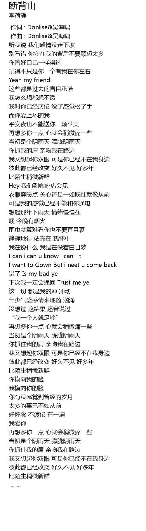 | [00:00.000] | 作词 : Donlise&吴海啸 |