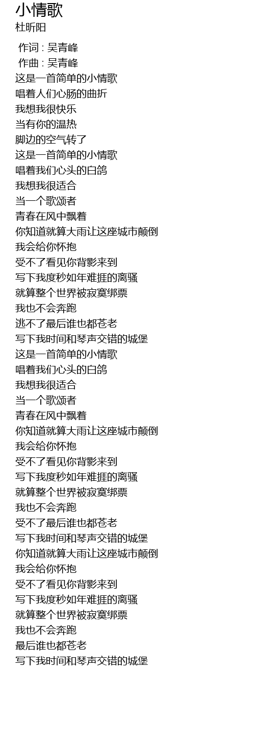 | [00:31.28] | zhè shì yī shǒu jiǎn dān de xiǎo qíng gē |