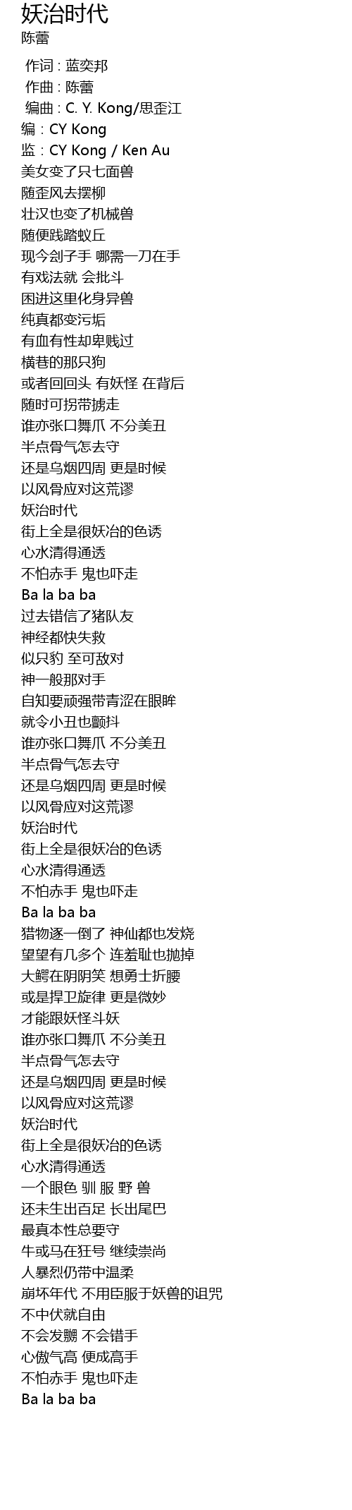 | [00:59.50] | 或者回回头 有妖怪 在背后 |