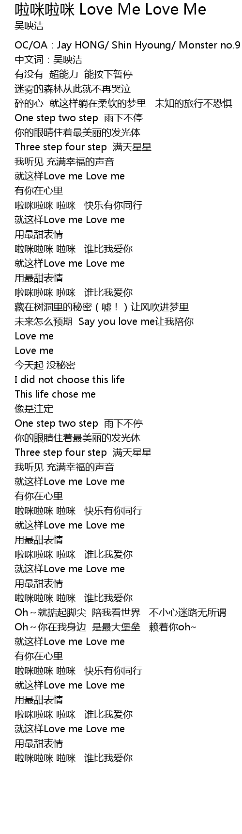 | [00:02.775] | OC/OA:Jay HONG/ Shin Hyoung/ Monster no.9 (aka Lee Sung-Han) |
