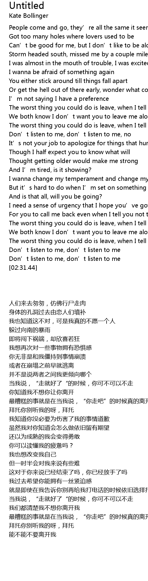 | [01:02.33] | The worst thing you could do is leave, when I tell you, " Just go" |