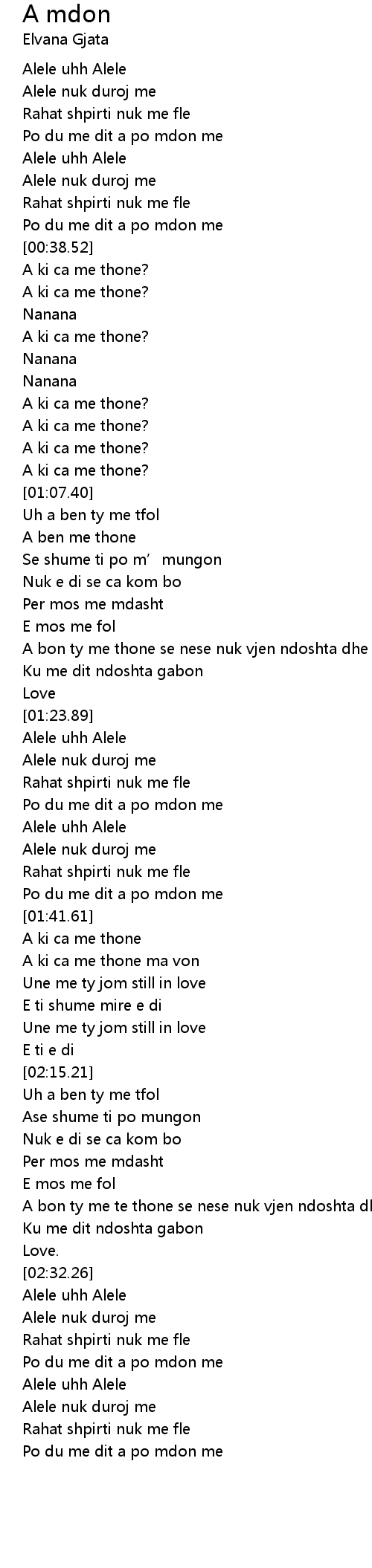 | [01:16.66] | A bon ty me thone se nese nuk vjen ndoshta dhe gabon |