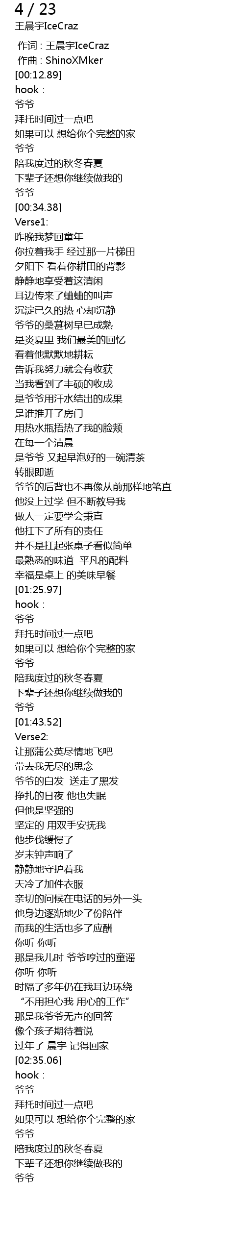 | [00:00.00] | 作词 : 王晨宇IceCraz |