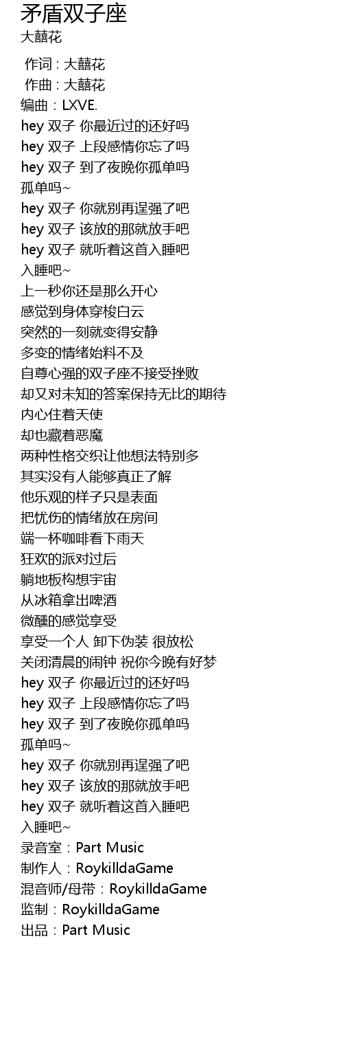 | [01:32.660] | hey 双子 你最近过的还好吗 |