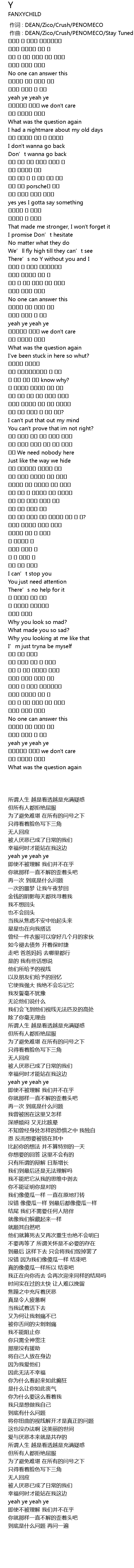| [00:01.000] | 作曲 : DEAN/Zico/Crush/PENOMECO/Stay Tuned |