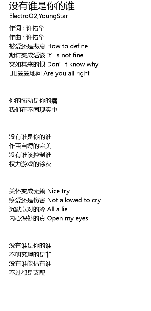 | méi yǒu shuí néng zhàn yǒu shuí | |