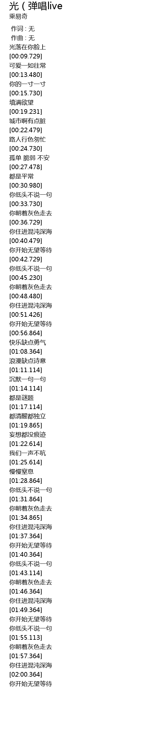 | [00:00.000] | 作词 : 无 |