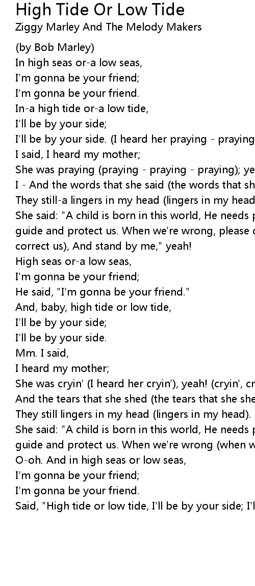 Said, "High tide or low tide, I'll be by your side; I'll be by your side -" |