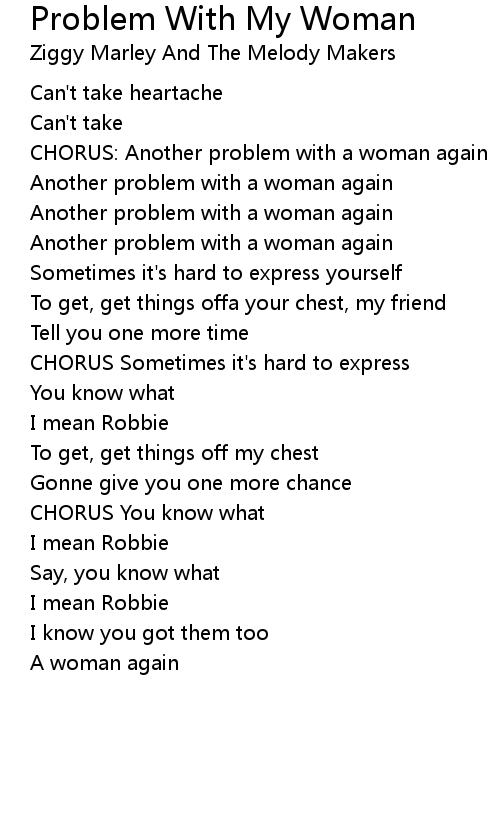 CHORUS: Another problem with a woman again |