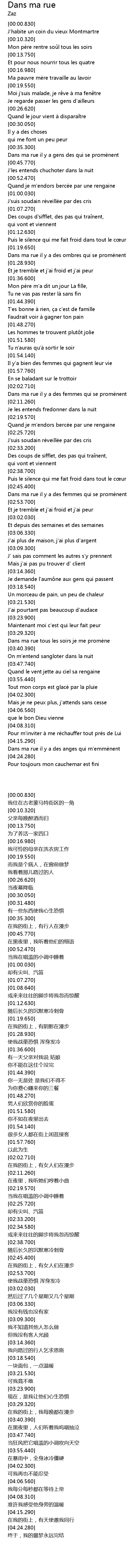 | [00:54.840] | Quand je m' endors berce e par une rengaine |