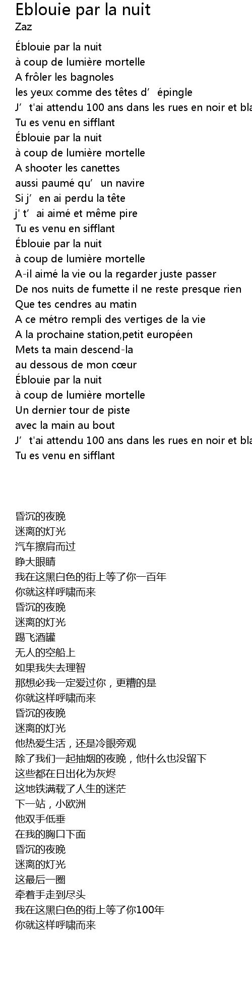 | [02:01.92] | J' t' ai attendu 100 ans dans les rues en noir et blanc |
