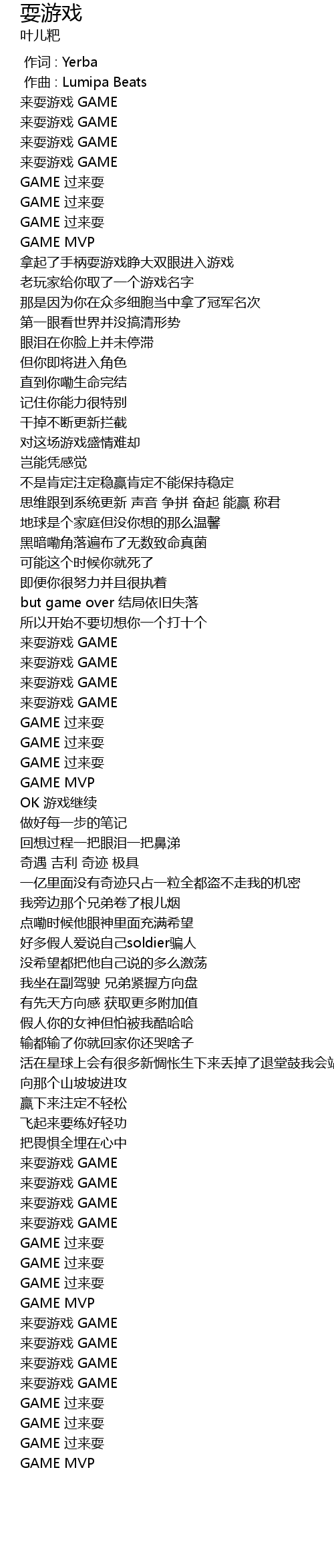 | [02:40.263] | lái shuǎ yóu xì GAME |
