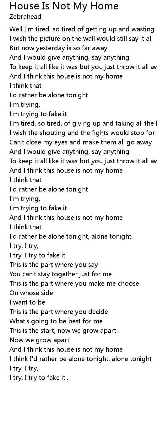 | And I think this house is not my home | |