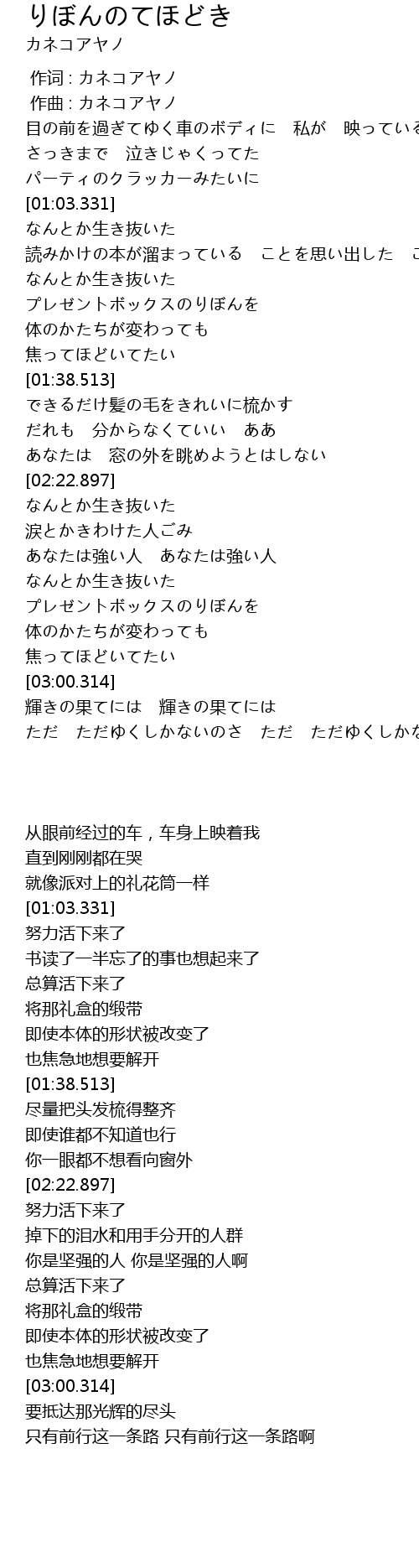 | [00:01.000] | 作曲 : カネコアヤノ |