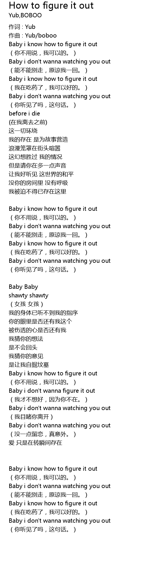 | Baby i know how to figure it out | |