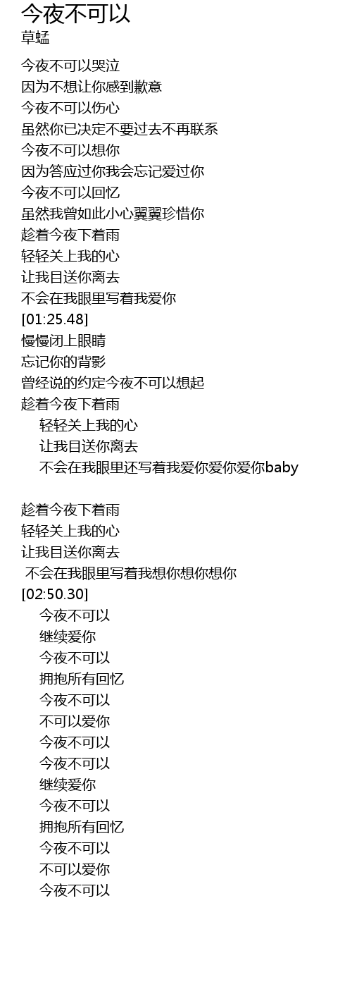 | [00:43.43] | jīn yè bù kě yǐ xiǎng nǐ |