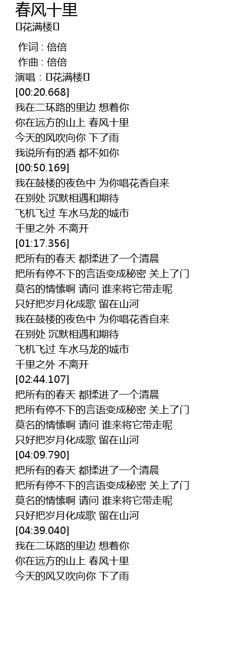 | [00:27.668] | 我在二环路的里边 想着你 |
