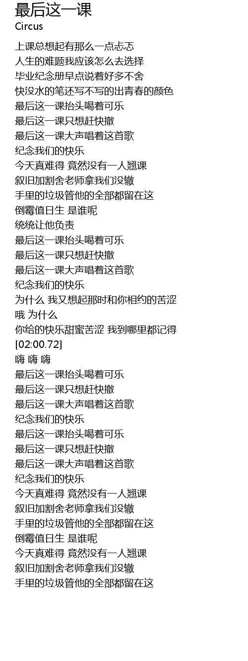 | [00:46.51] | 最后这一课大声唱着这首歌 |