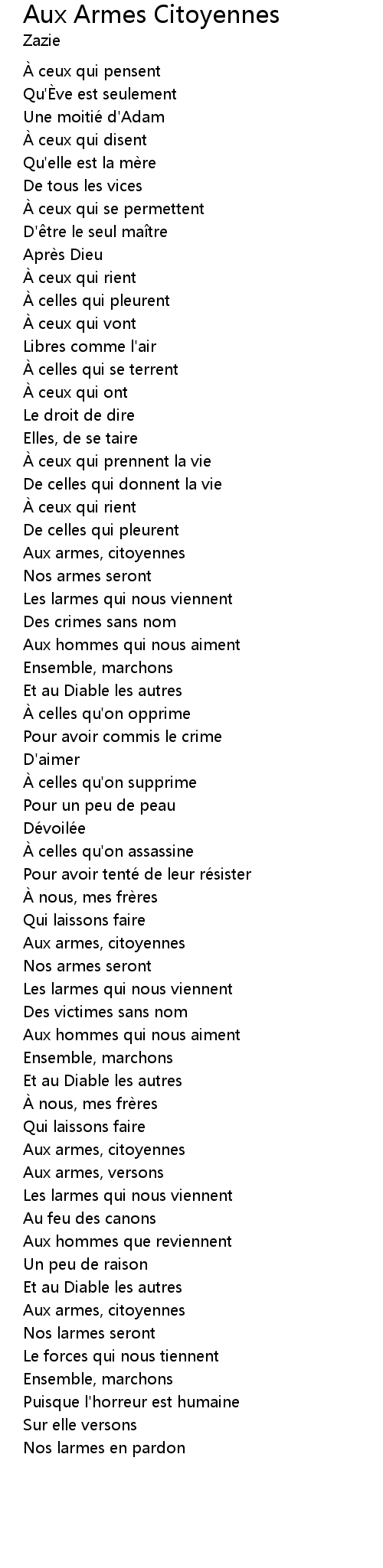 | Song | Aux Armes Citoyennes |