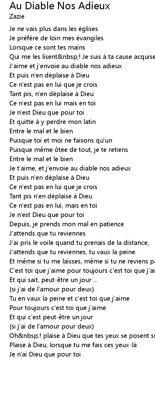 | Et puis n' en dé plaise à Dieu | |