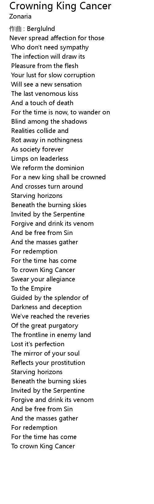 | Song | Crowning King Cancer |